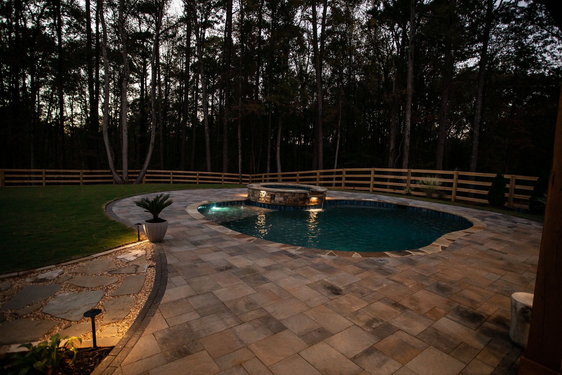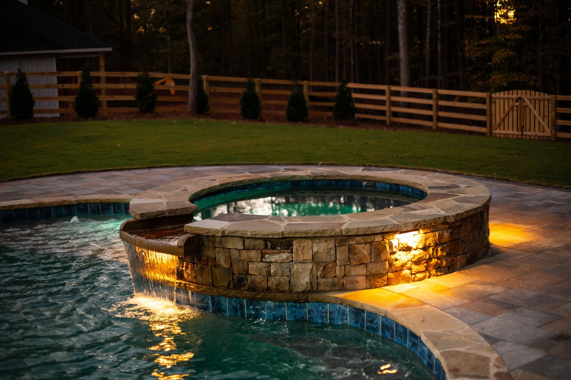 Electrical components are integrated to support pool lighting, controls, and optional features. Lighting placement enhances visibility and usability while maintaining safety standards. Electrical systems are installed with careful attention to code requirements and operational efficiency.